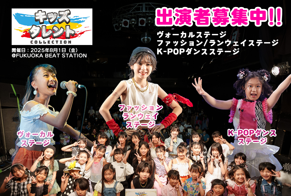 キッズタレントコレクション〜プレミアステージ〜 2025年8月1日(金)場所:FUKUOKA BEAT STATION福岡市中央区渡辺通4-11-4初めての方も応募OK! KCE福岡がレッスンサポートに入るので、これから芸能を目指すキッズや、成長を思い出に残したい、経験してみたいキッズも 安心してチャレンジしてください♪
